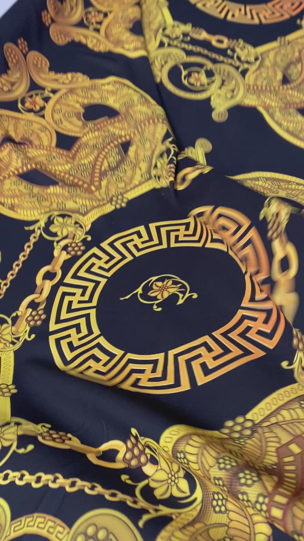 قماش كريب باروكي فاخر بسلسلة بالمتر - أسود وذهبي مزخرف