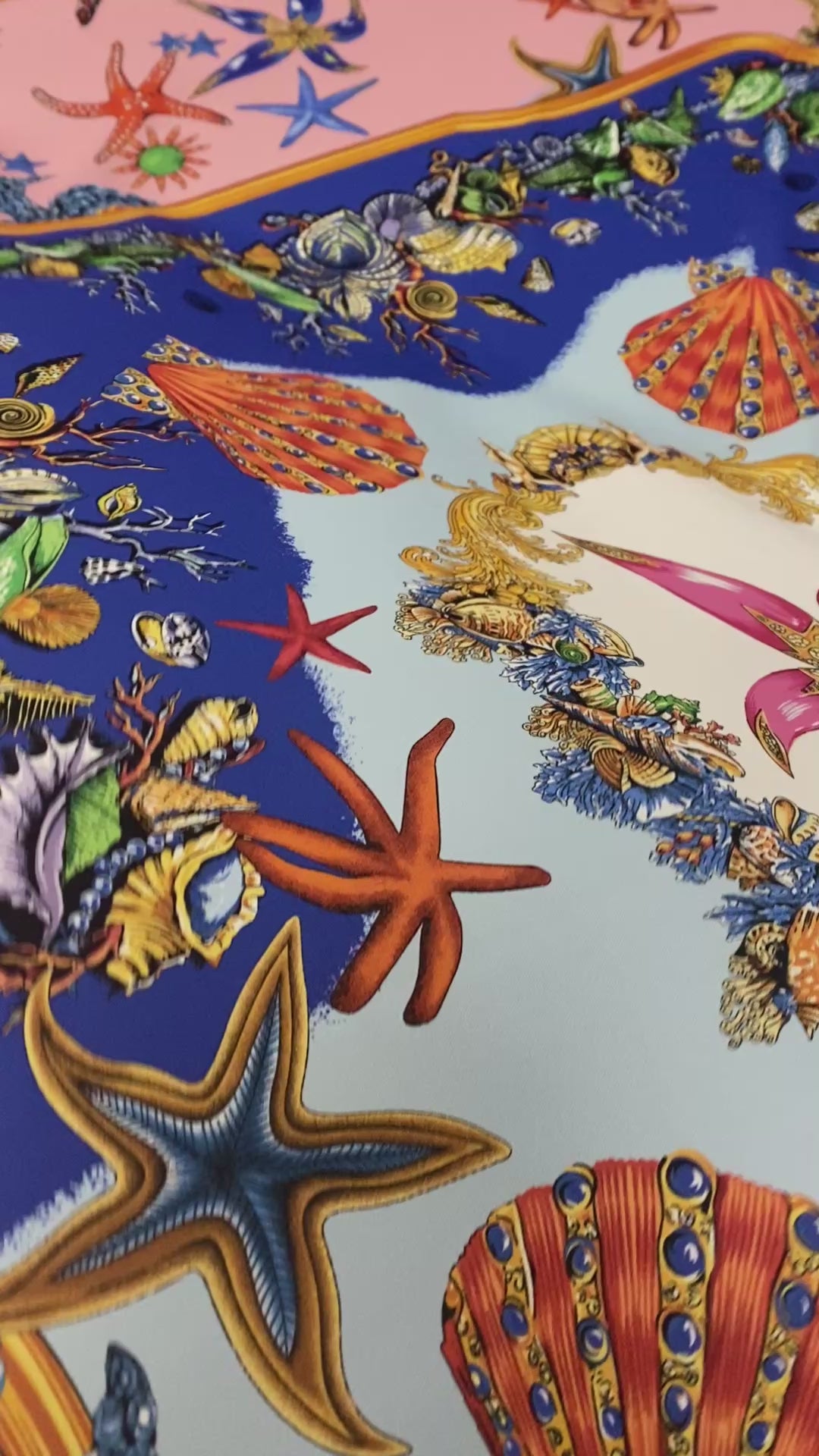 قماش كريب فاخر بالمتر – طبعة نجم البحر والصدف