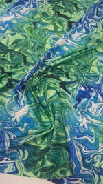 قماش سباندكس بتأثير الرخام بالمتر - طبعة زرقاء خضراء