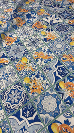 قماش ساتان بطبعة بلاط البحر الأبيض المتوسط والليمون بالمتر