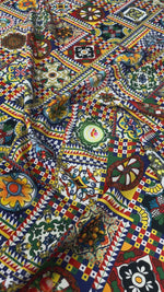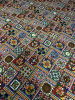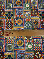 تسوق قماش الكريب بطبعة بلاط فسيفساء ملونة بالمتر. مثالي للفساتين والبلوزات والحرف اليدوية. جودة عالية، تصميم نابض بالحياة وفريد.