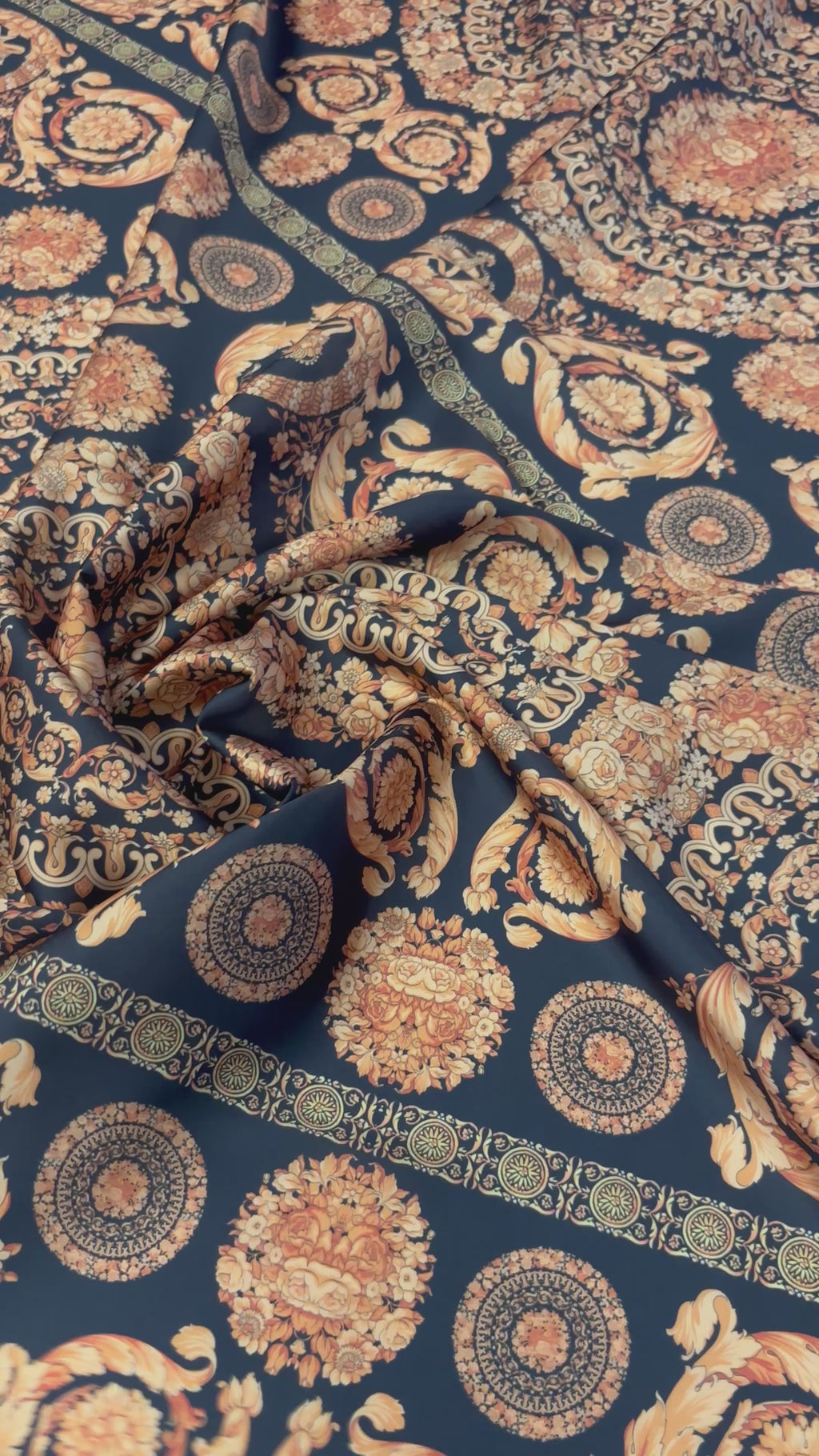 قماش ساتان بحري بالمتر – ميدالية زهور باروكية