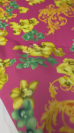قماش كريب مزهر بنقشة الأوركيد بالمتر - زهور وردية صفراء وخضراء