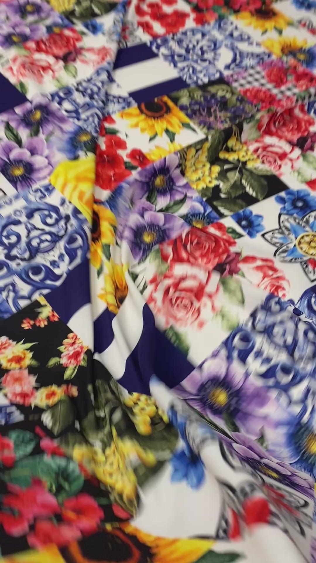 تسوق قماش كريب نابض بالحياة بنقشة زهور مرقعة بالمتر. مثالي للفساتين والبلوزات والحرف اليدوية. جودة فاخرة، طباعة ملونة وأنيقة.
