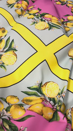 قماش ساتان بطبعة ليمون وردي بالمتر – صيف البحر الأبيض المتوسط