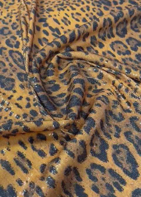 قماش الترتر بطبعة جلد النمر بالمتر - ذهبي بني لامع