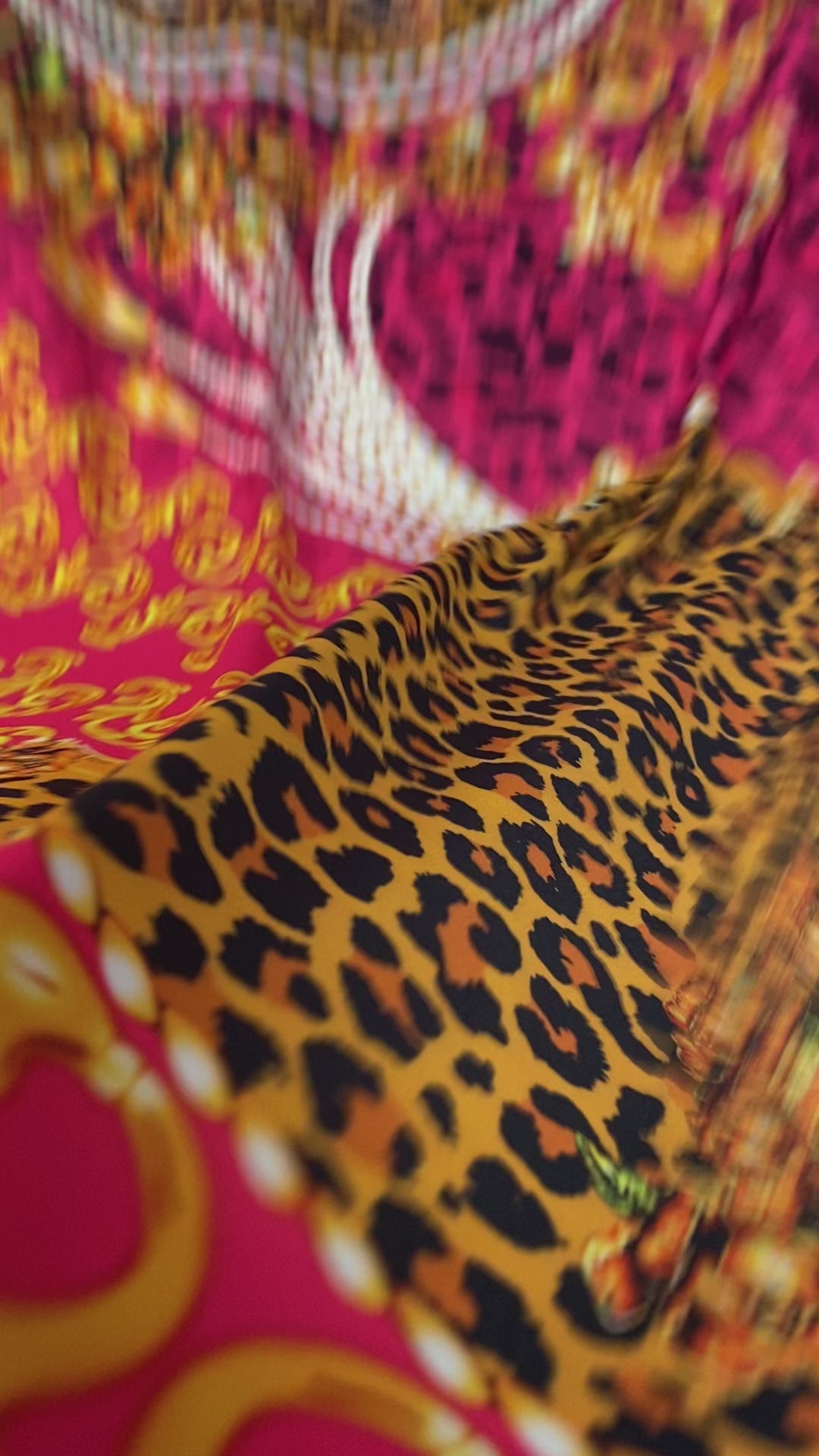 قماش بنقشة الفوشيا الفهد الباروكي - قماش بالمتر، خيارات: ساتان، كريب، سباندكس، شيفون