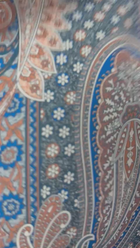 قماش بيزلي أنيق بدرجات اللون الأزرق والبيج الناعمة. مثالي للفساتين والقمصان ومشاريع الديكور المنزلي. جودة ممتازة تُباع بالمتر.