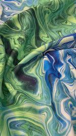 قماش تنجيد متين بنمط تجريدي رخامي أخضر وأزرق نابض بالحياة. مثالي للكراسي والوسائد والأرائك ومشاريع الديكور الداخلي الحديثة. يُباع بالمتر.