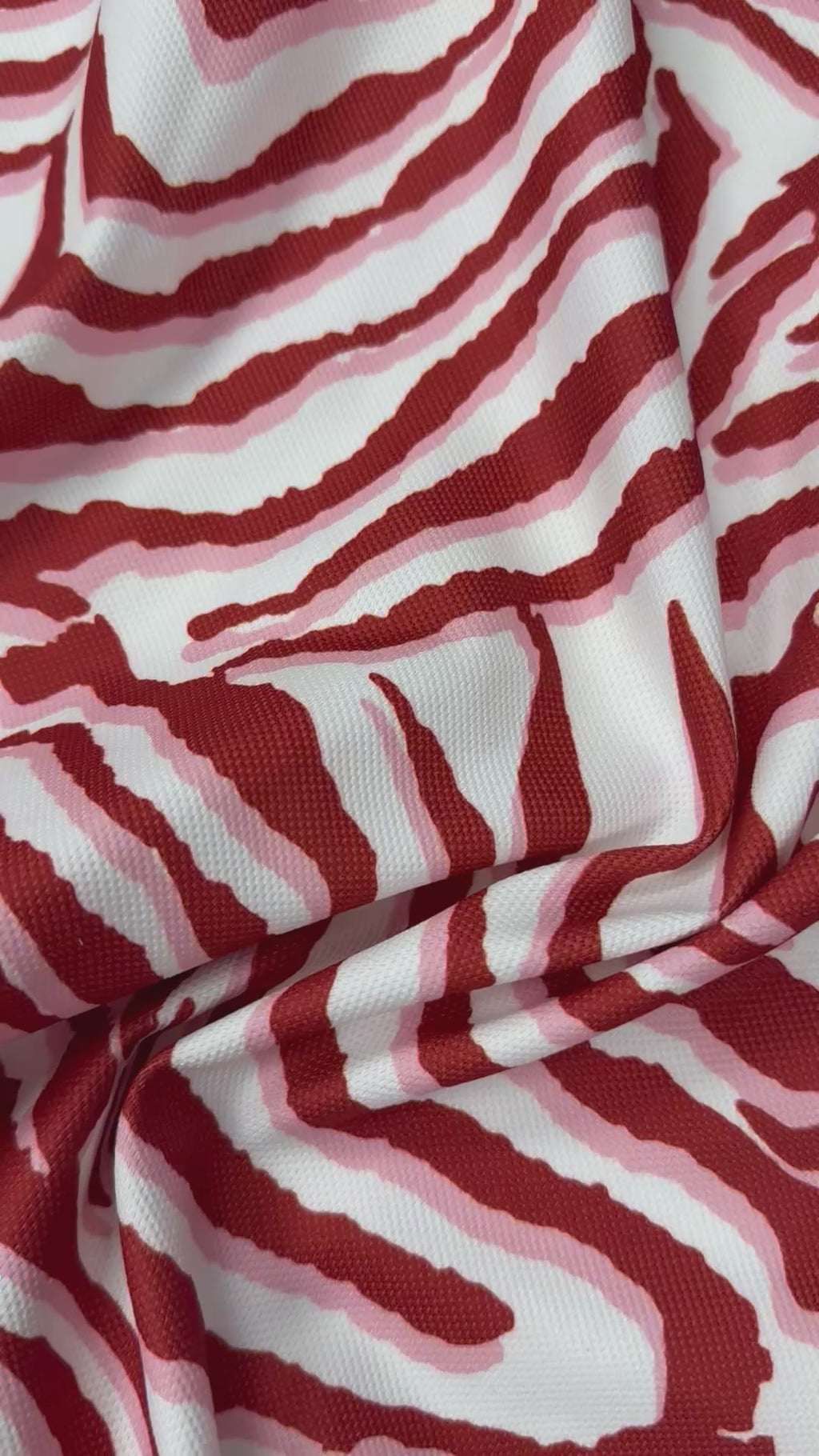 قماش تنجيد أحمر جذاب بطبعة حمار وحشي، بلمسة نهائية مزخرفة. مثالي للوسائد والكراسي والأرائك ومشاريع الديكور الداخلي الجذابة. يُباع بالمتر.