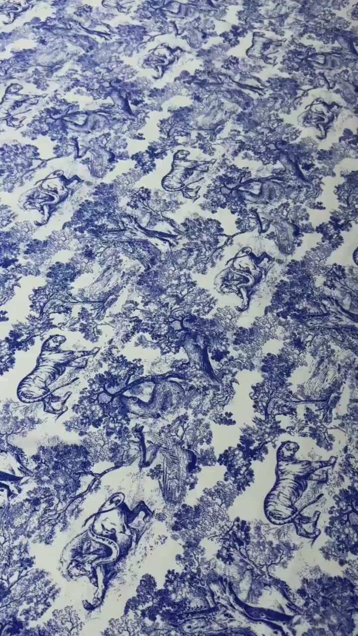 قماش بنقشة الغابة البرية الزرقاء - قماش مطبوع حسب الطلب، اختر الخامة بالمتر