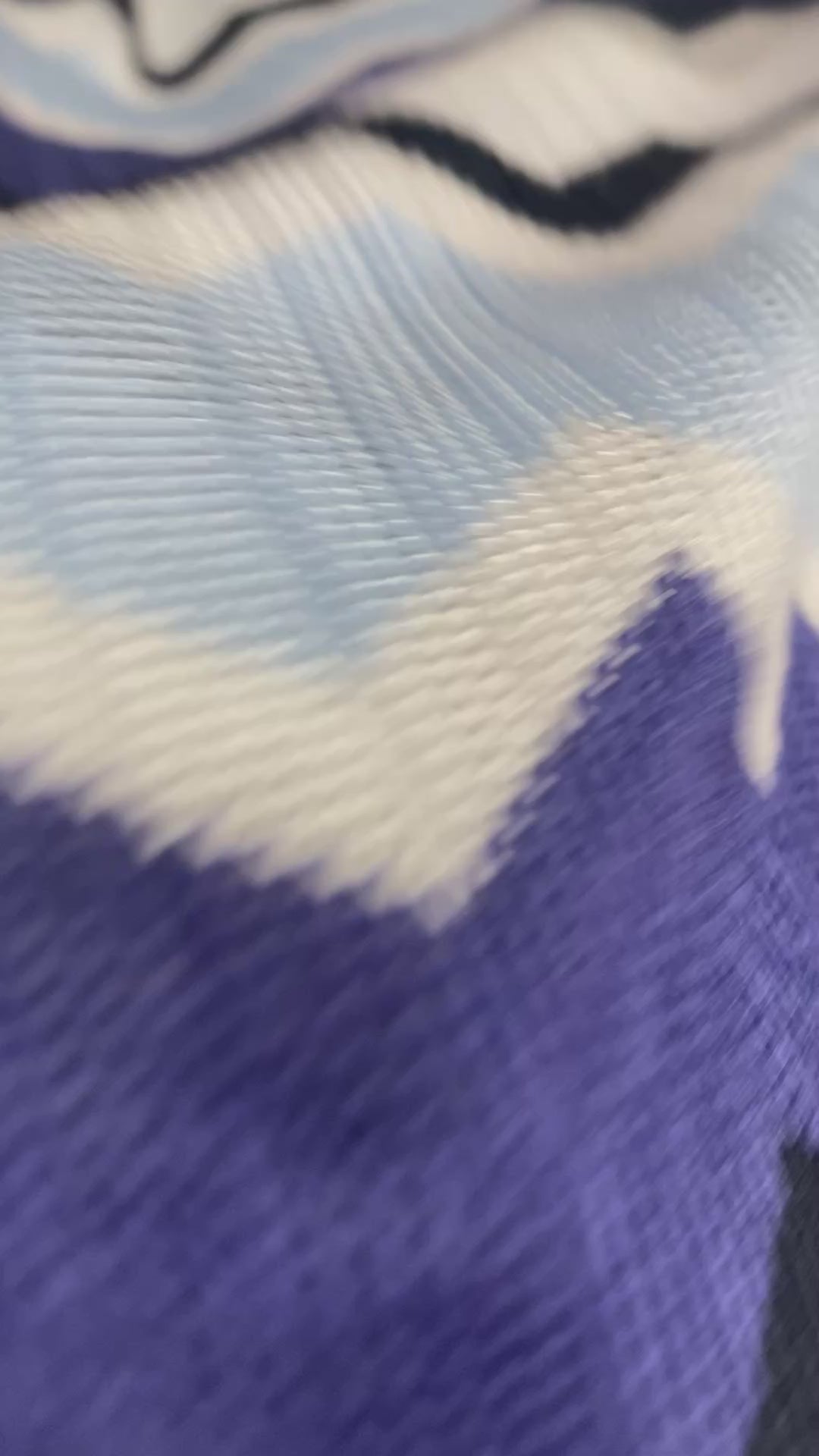 Geometric Zigzag Patterned Fabric Blue, Purple & Beige Woven
