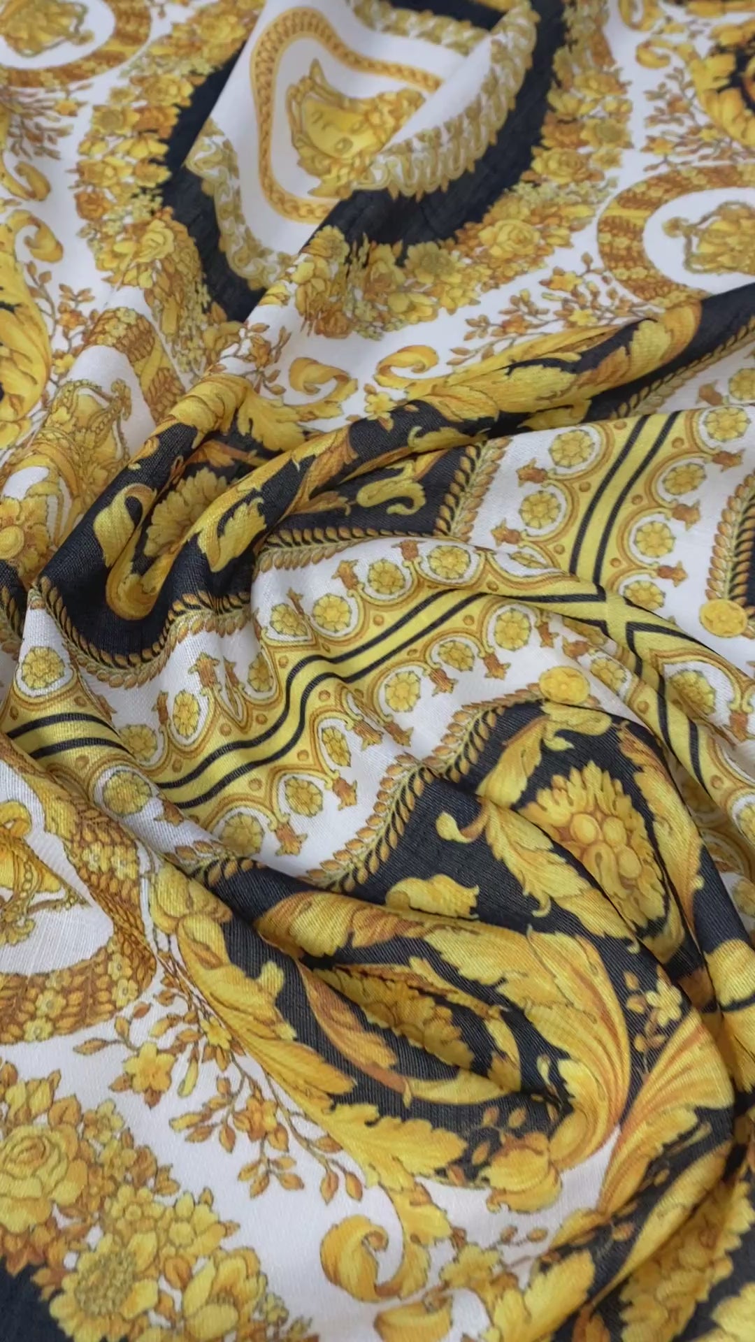 Discover our luxurious Baroque Medusa pattern fabric in black and gold. This stunning fabric features an intricate design that adds elegance to any project. Perfect for upholstery, drapery, or fashion, it combines style with versatility. The rich colors and detailed pattern make it an eye-catching choice for your creative endeavors.