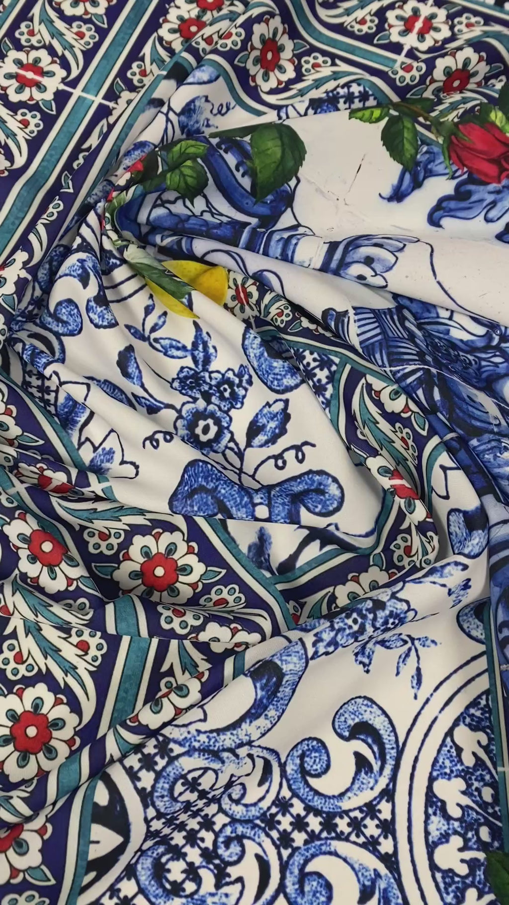 Majolica Mosaic Pattern Italian Tile Fabric – Custom Printed Fabric on Satin, Crepe, Spandex or Chiffon