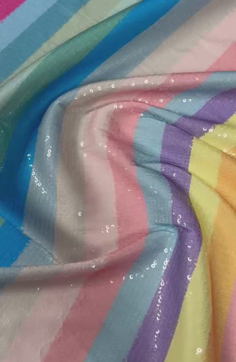 Pastel Rainbow Sequin Striped Fabric by the Metre