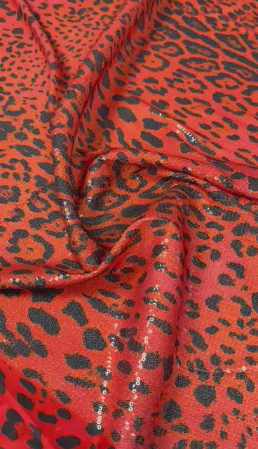 Red Leopard Ombre Sequin Fabric for Fashion Sewing