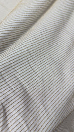 Choose the Shimmer Ottoman in Soft Gold Striped Fabric to bring your creative visions to life with a textile that balances elegance, stretchability, and resilience. Its versatile nature supports a wide range of artistic applications while providing the comfort and durability essential for premium fashion pieces. Elevate your designs with this gold shimmer fabric that combines function with refined style.