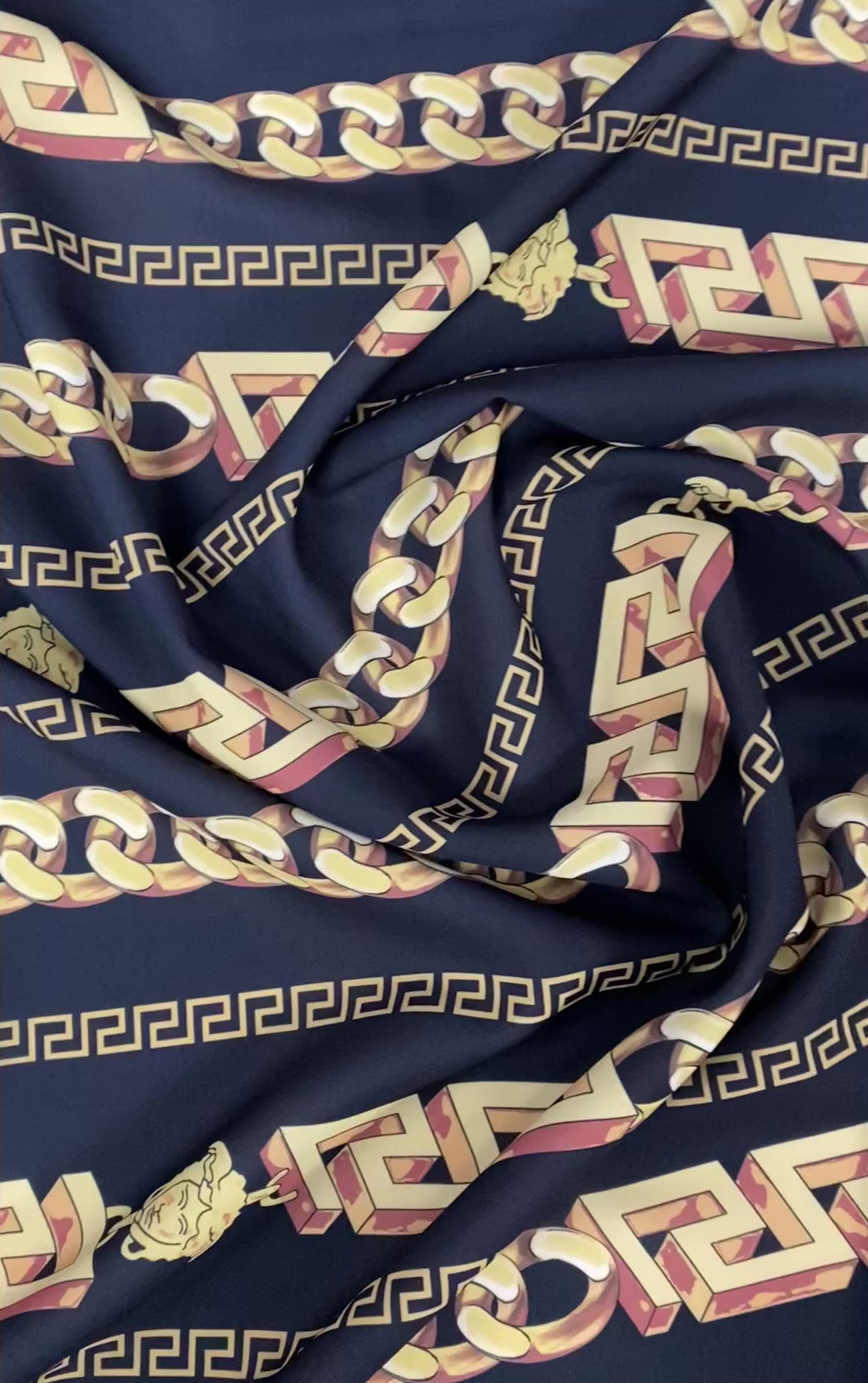 Greek Key Black and Gold Pattern Fabric – Available in Satin, Crepe, Spandex & Chiffon | By Metre