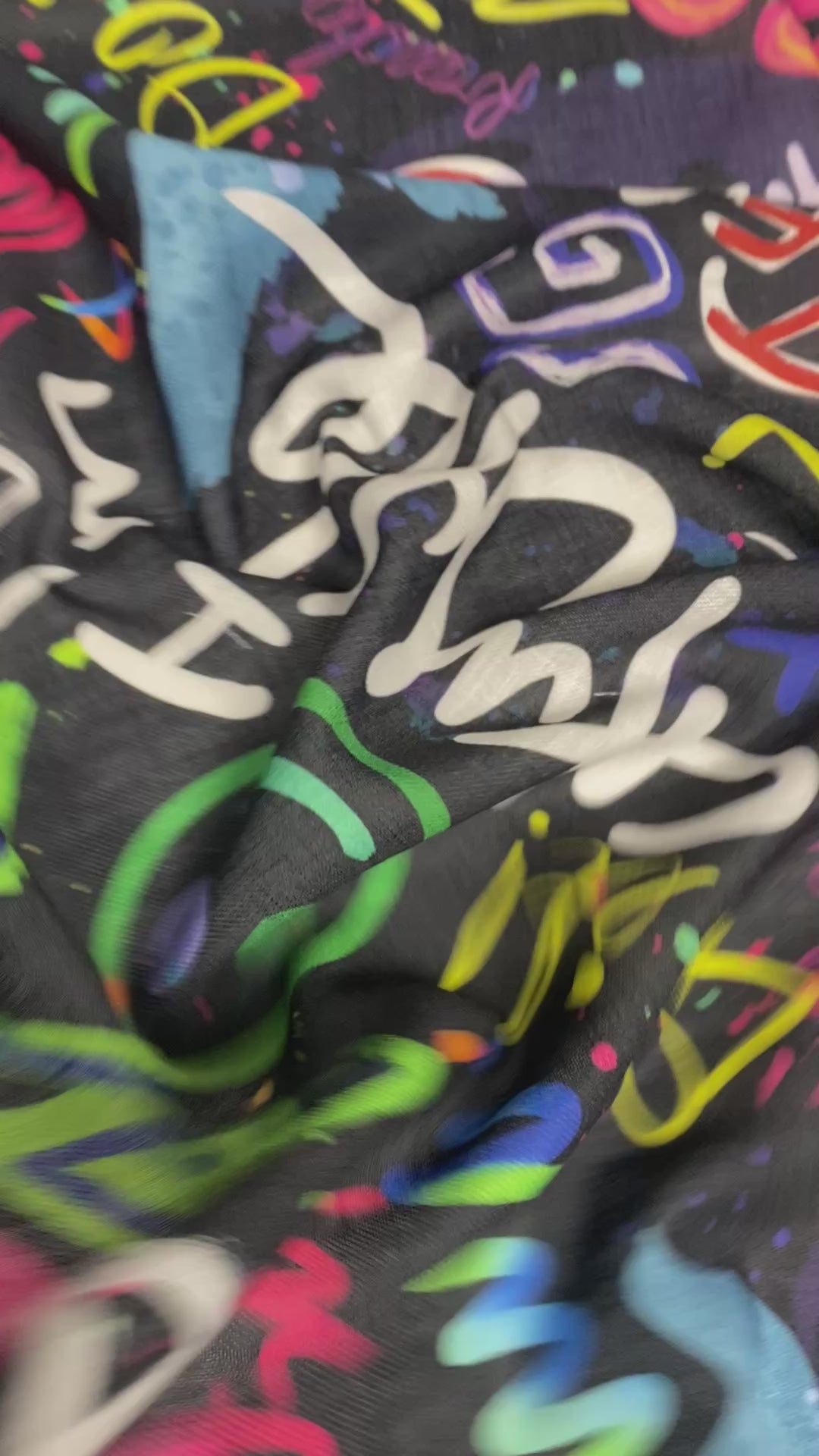 Vibrant graffiti-style linen fabric with bold colours and street art vibes. Perfect for creative clothing, bags, or modern home décor.