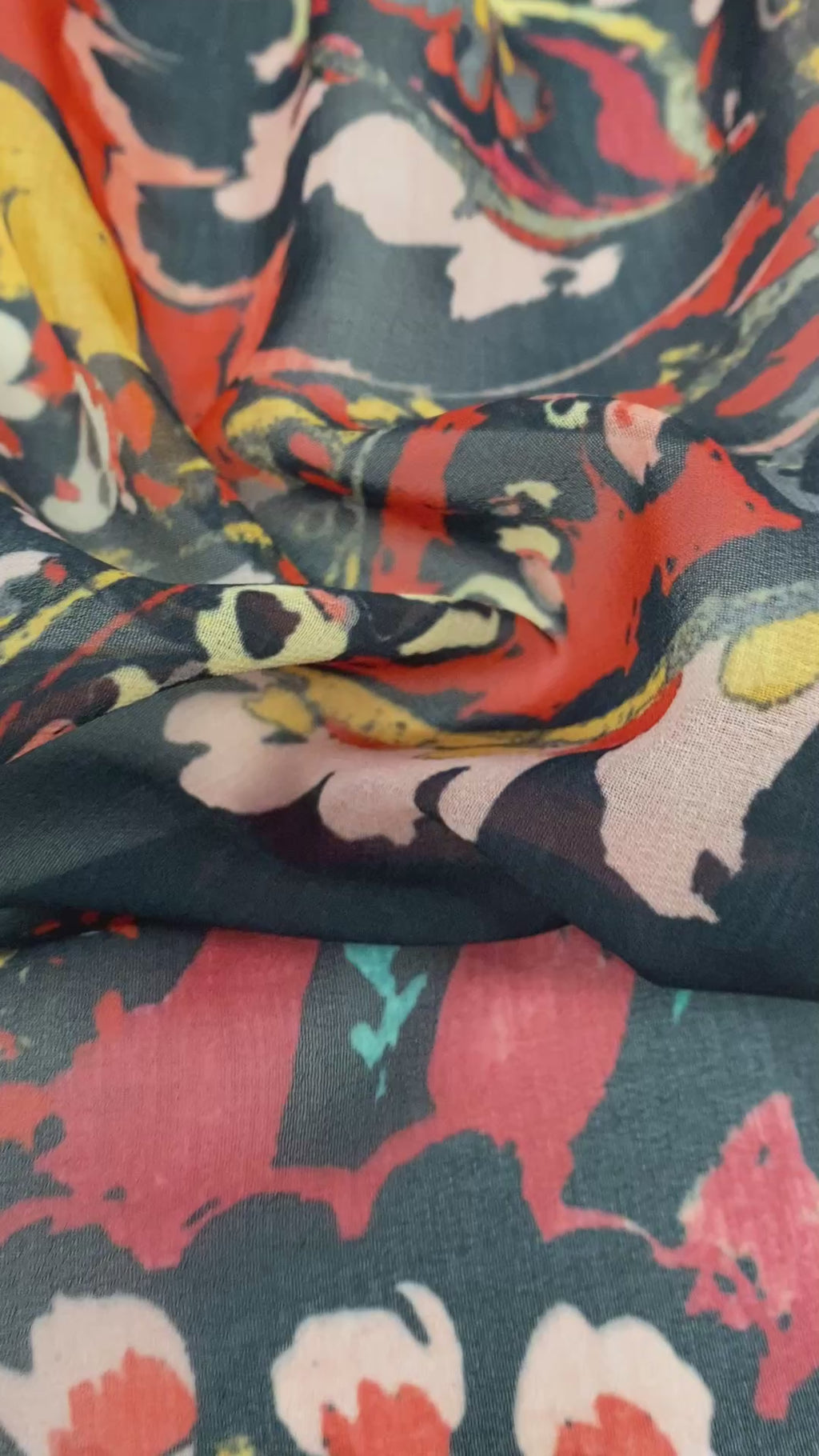 Chiffon is delicate and prone to snagging or fraying. It's excellent for layering and flowy designs. It requires gentle handling and is best cleaned by hand washing or dry cleaning.