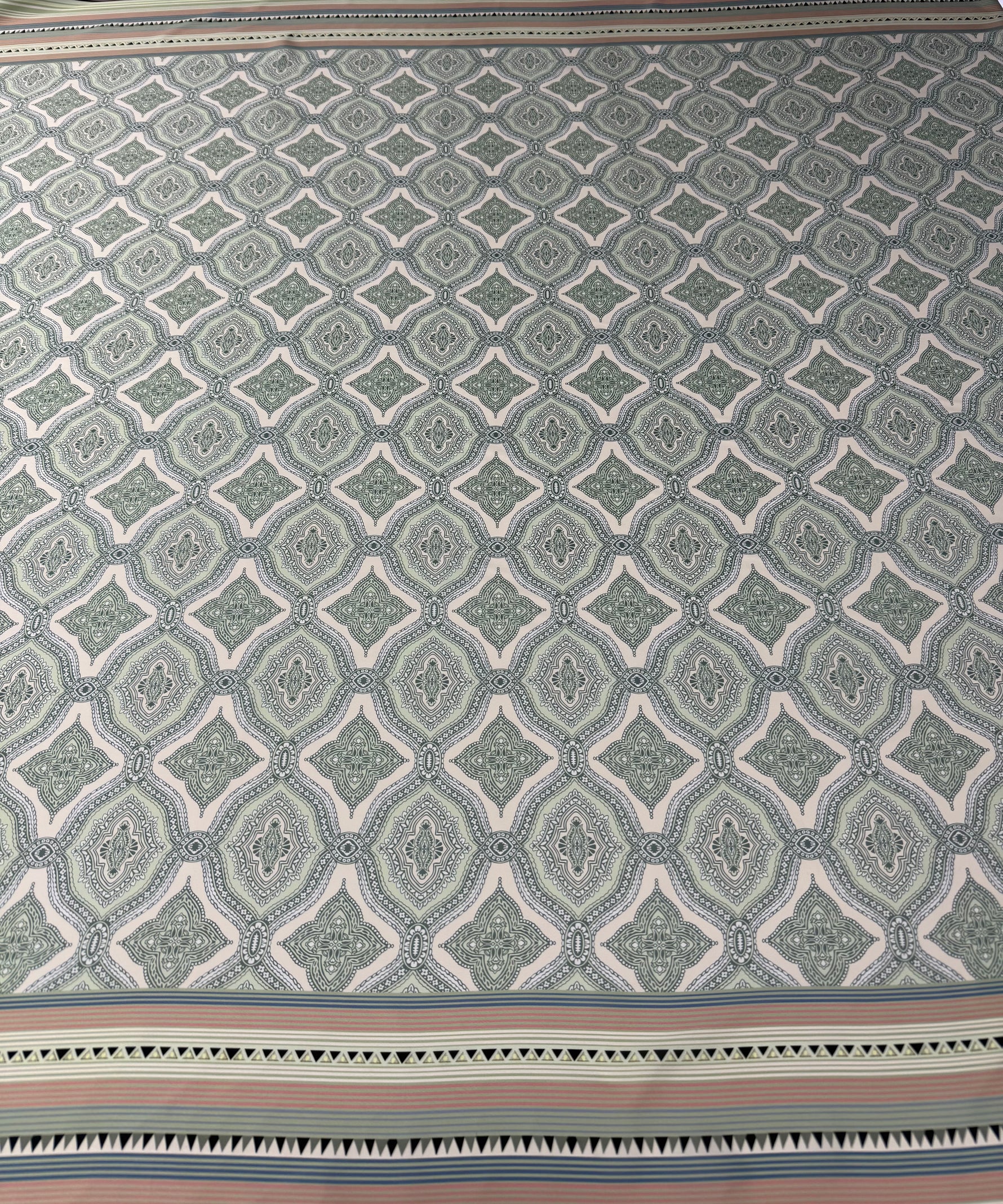 Soft Green and Pink Ethnic Pattern with Border Stripes Fabric – Custom Printed Fabric, Choose Material by Metre