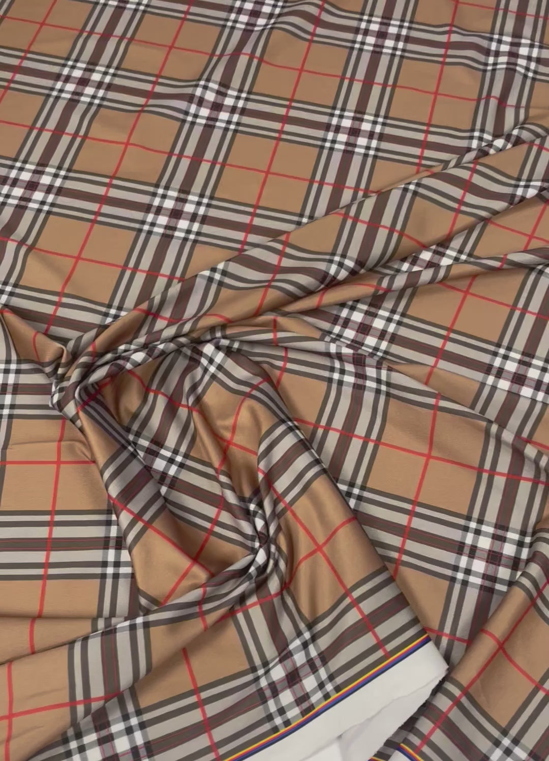 Beige Tartan Plaid Spandex Fabric by the Metre