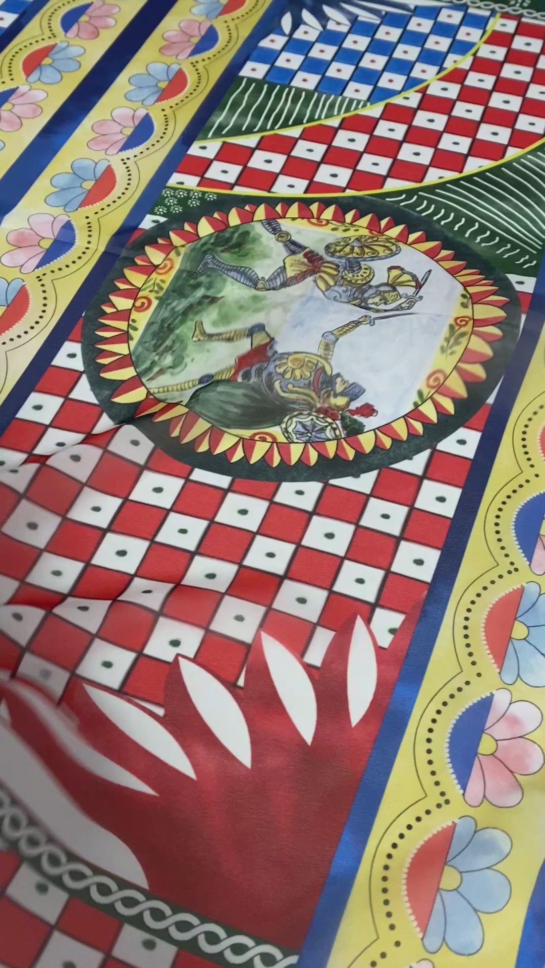Vibrant chiffon fabric with artistic geometric patterns. Soft, airy, and elegant—ideal for dresses, scarves, or statement fashion pieces.