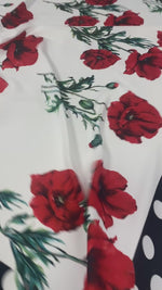 Red Poppy Floral Fabric With Polka Dot Border – Custom Printed Fabric, Choose Material by Metre