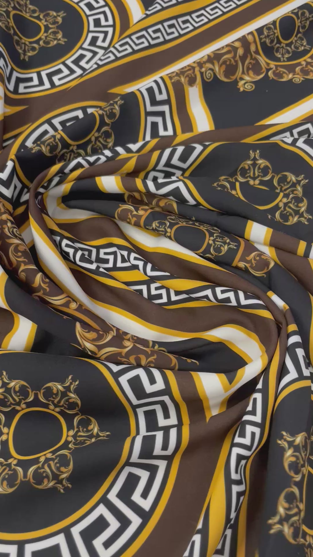 Baroque Gold & Black Crepe Fabric by the Metre. Sold by the metre, ideal for dressmaking, blouses, skirts and elegant fashion projects.