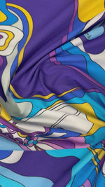 Retro psychedelic swirl print on soft, breathable organic cotton poplin. 150cm wide and perfect for dresses, shirts and statement projects.