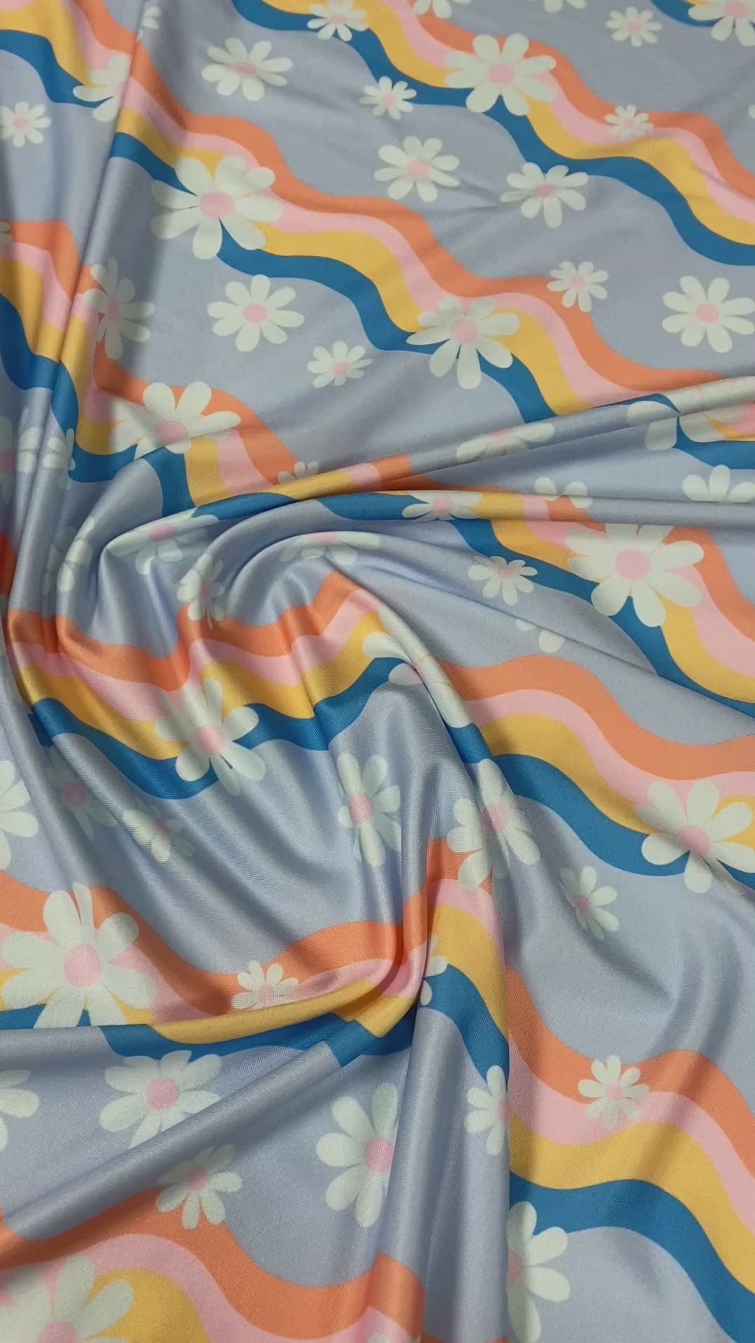 Retro Wave Daisy Print Spandex Fabric – Floral Pattern by Metre