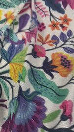 Shimmering lurex fabric with colourful floral patterns. Ideal for dresses, evening wear and standout designs, sold by the metre.