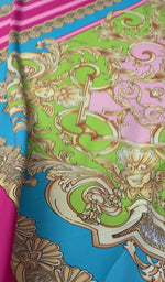 قماش كريب خفيف الوزن بطبعة باروكية زاهية بألوان الأزرق والوردي والأخضر. يتميز بثنيات ناعمة، وهو مثالي للفساتين والبلوزات والأوشحة ومشاريع الخياطة الإبداعية. يُباع بالمتر.