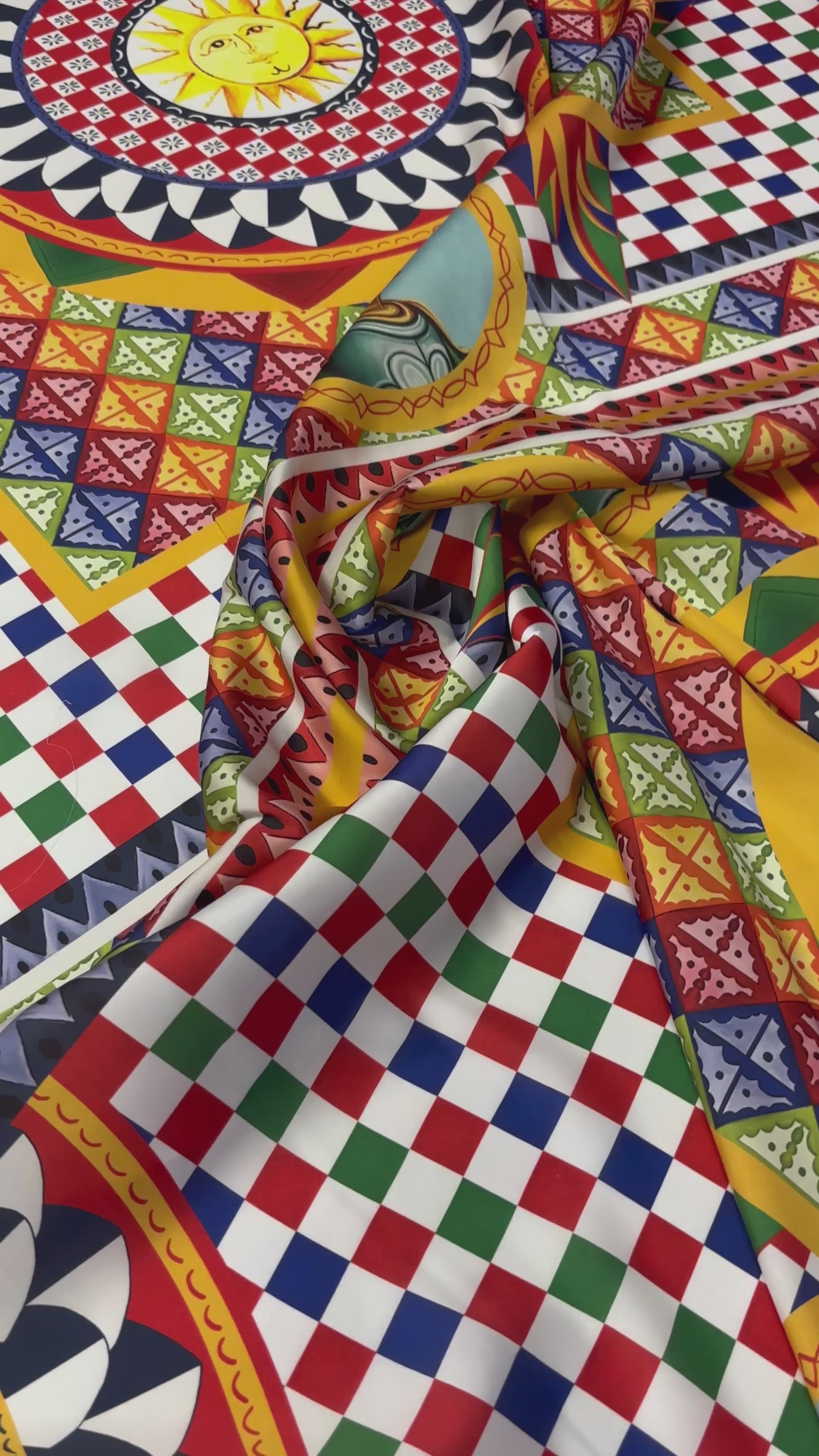 قماش ساتان ملون بالمتر – محارب هندسي متوسطي
