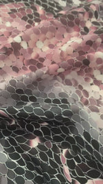 قماش حراشف تجريدية باللونين الوردي والأسود - قماش مطبوع حسب الطلب على الساتان أو الكريب أو الإسباندكس أو الشيفون