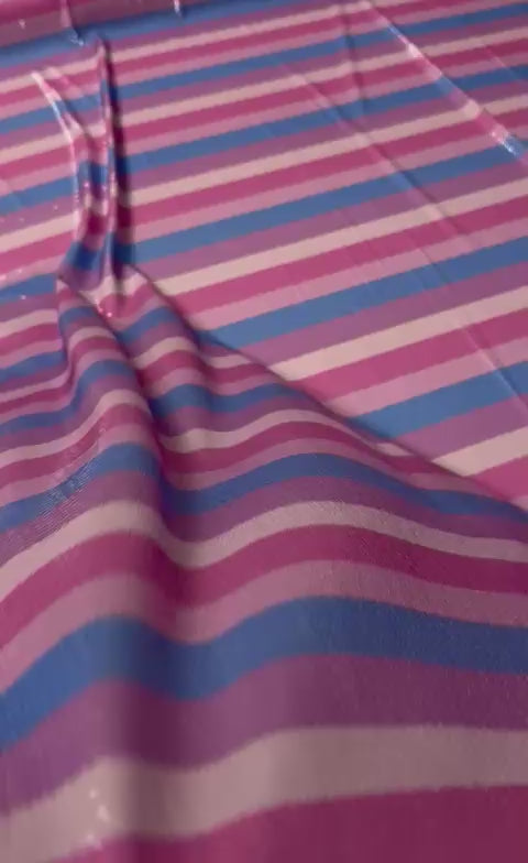 قماش الترتر المخطط باللونين الوردي والأزرق بالمتر