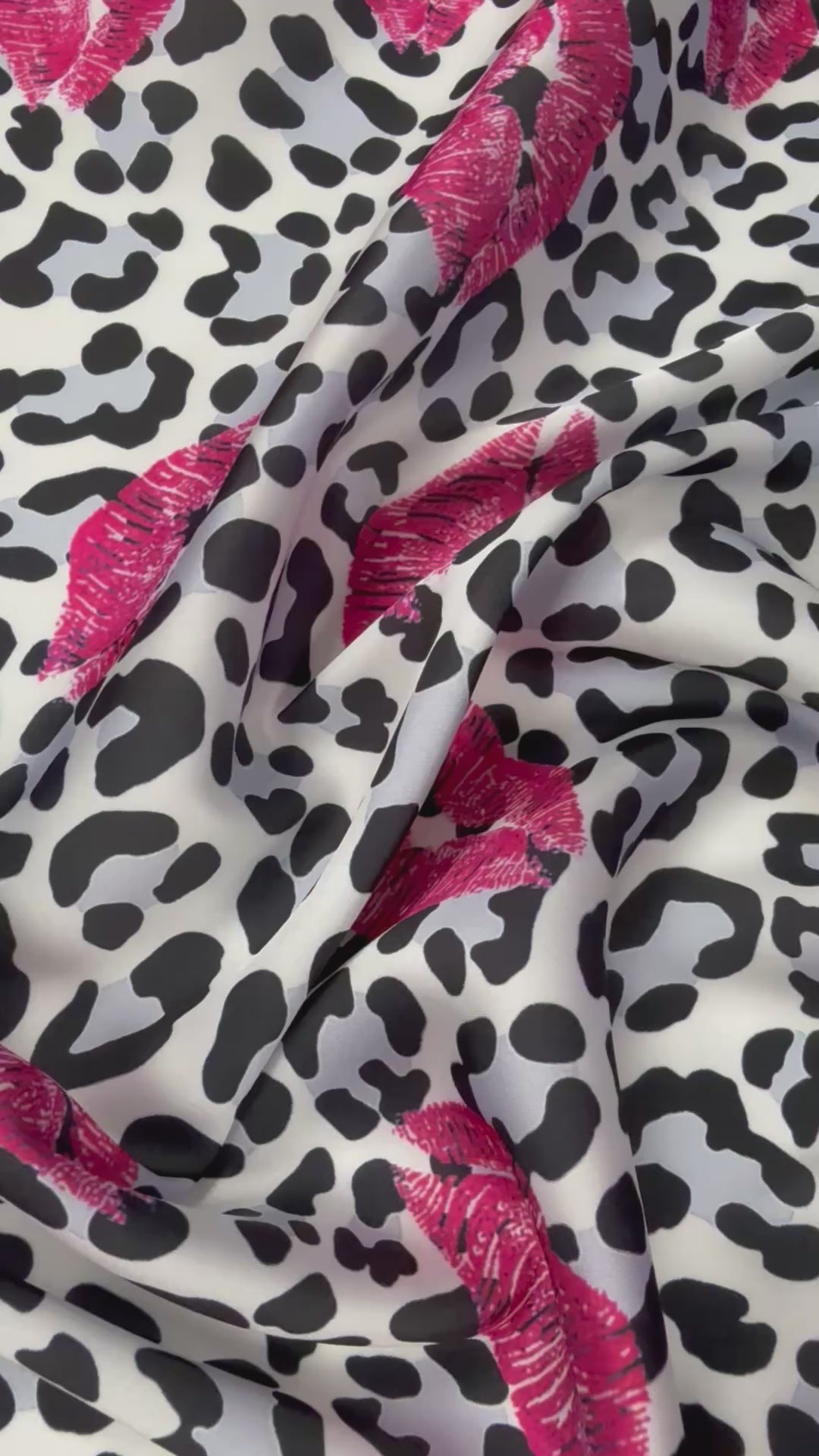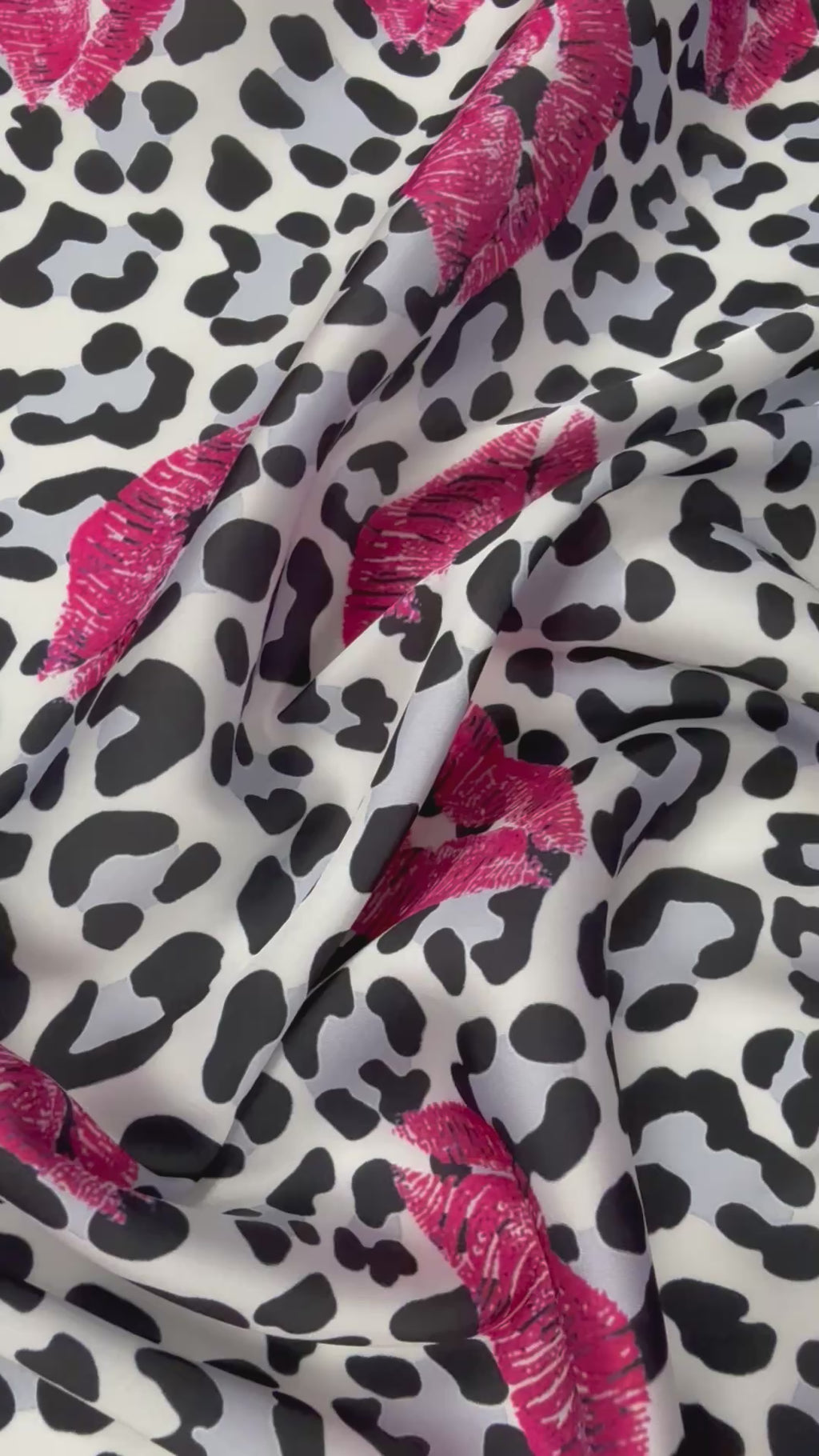 قماش ساتان لامع بنقشة جلد الفهد وشفاه وردية جريئة، يُضفي لمسةً انسيابيةً ولمسةً نهائية نابضة بالحياة. مثالي للفساتين والبلوزات والتنانير ومشاريع الأزياء المميزة. يُباع بالمتر.