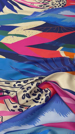 قماش ساتان استوائي نابض بالحياة بألوان جريئة ولمسات من جلد الفهد، يمنحه لمعانًا ناعمًا وانسيابية. مثالي للفساتين والبلوزات والتنانير وقطع الأزياء المميزة. يُباع بالمتر.